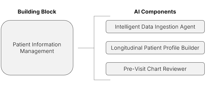 The table below shows how the AI-enabled versions of the seven core building blocks deliver value across these three outcomes that matter most to your users — clinicians, administrators, and patients.