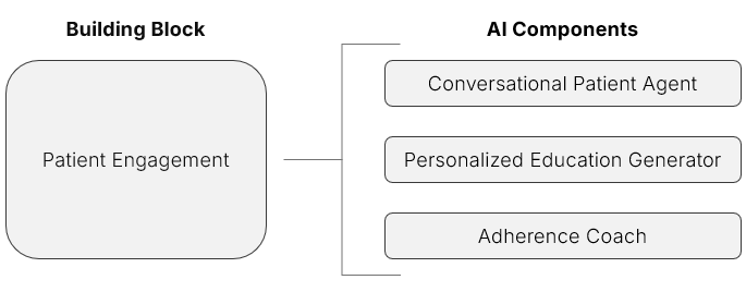 Your AI solution stack: a conversational patient agent for natural language interactions. A personalized education generator that adapts to health literacy levels. An adherence coach that provides timely, contextual nudges.