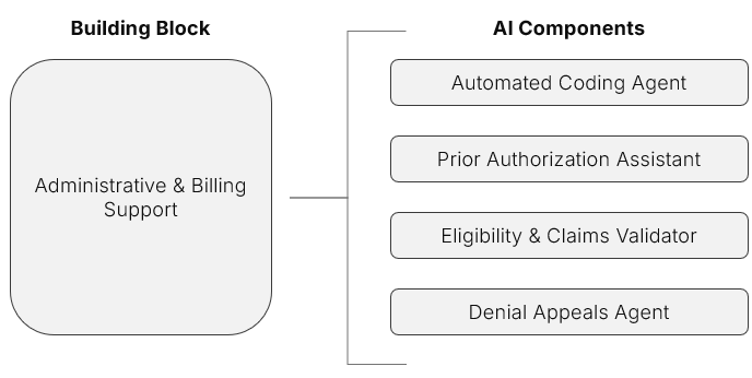 Your AI solution stack: an automated coding agent that extracts codes from documentation in real time. A prior authorisation assistant that generates packets instantly. An eligibility and claims validator that pre-checks before submission. A denial appeals agent that crafts compelling arguments with supporting documentation.