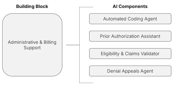 Your AI solution stack: an automated coding agent that extracts codes from documentation in real time. A prior authorisation assistant that generates packets instantly. An eligibility and claims validator that pre-checks before submission. A denial appeals agent that crafts compelling arguments with supporting documentation.