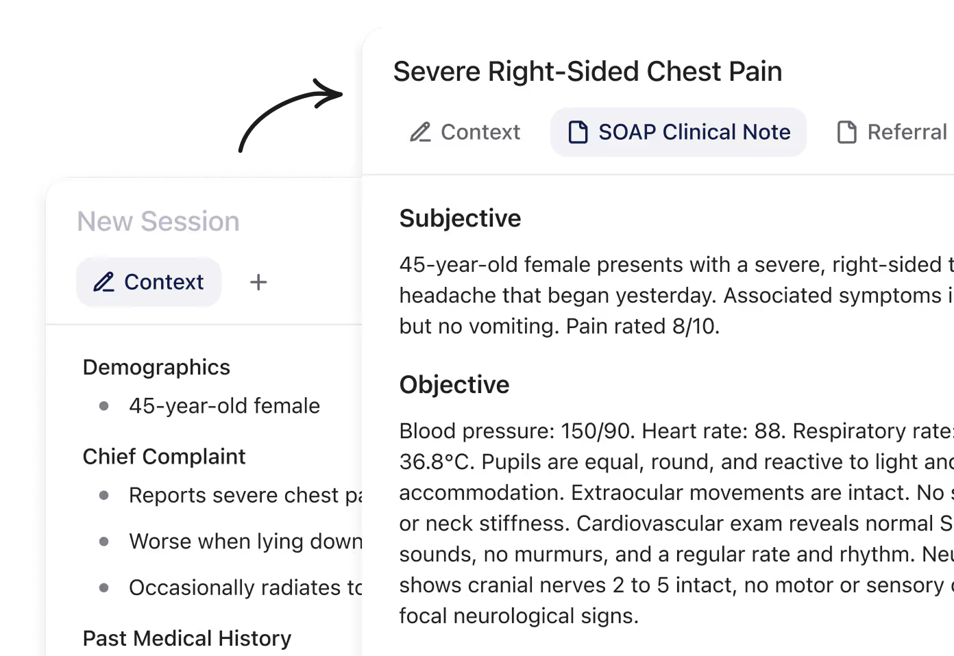 Structured fact extraction. Your ambient scribe should think like a clinician. Instead of brittle one-shot summaries, FactsR™ reasons over clinical data in real time, producing structured outputs developers and your end users can trust.
